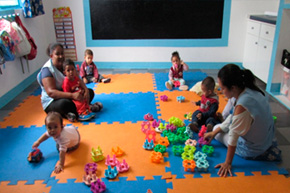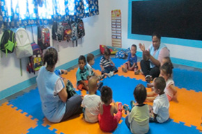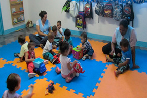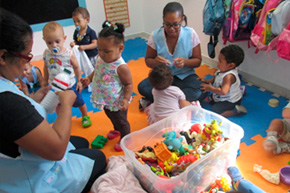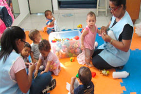 São atendidas por 4 professoras e 2 auxiliares de berçário.